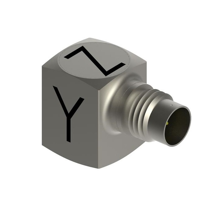 3313A高溫IEPE型三軸加速度傳感器 3313A3 500 g 10 mV/g 靈敏度,500 g 量程,4針 1/4-28徑向接頭,10-32安裝螺孔,4.1克重量,-51至121°C使用溫度
