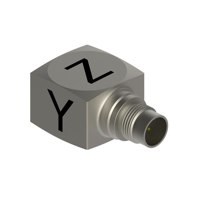 3343A微型IEPE型三軸加速度傳感器 3343A3 1000 g 5 mV/g 靈敏度,1000 g 量程,4針 M4.5 x 0.35徑向接頭,粘貼安裝,2.4克重量,-51至121°C使用溫度