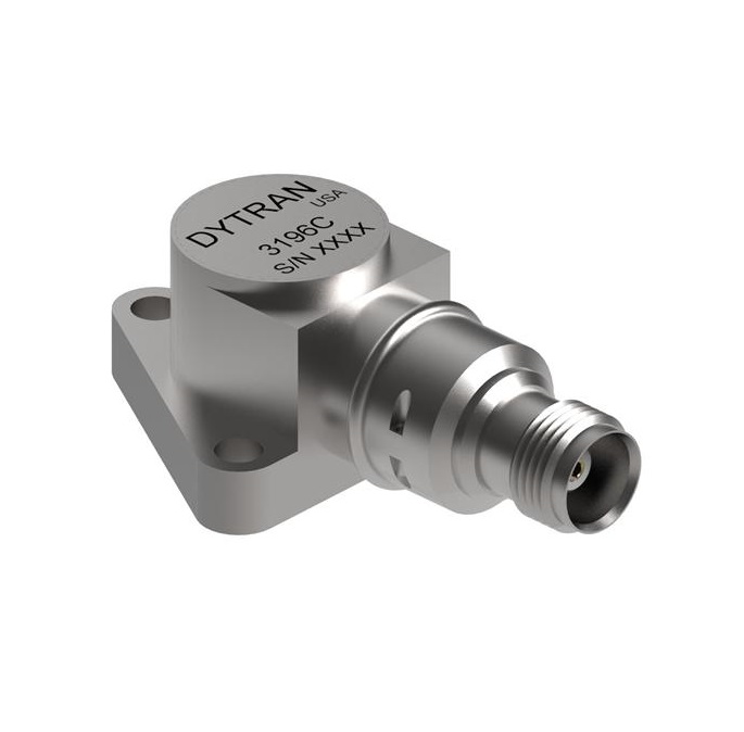 Dytran 3196C系列加速度傳感器,高溫型,壓電式電荷輸出,-8 pC/g 靈敏度,TNC軸向接頭,3孔法蘭安裝,85克重量,-53至260°C使用溫度