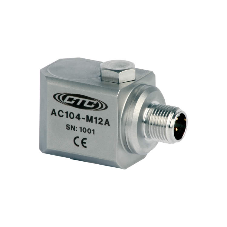 CTC AC104系列振動(dòng)傳感器,通用型,100 mV/g靈敏度,量程±50 g,頻響0.5-15000Hz,316L不銹鋼外殼材質(zhì),4針M12連接器出線