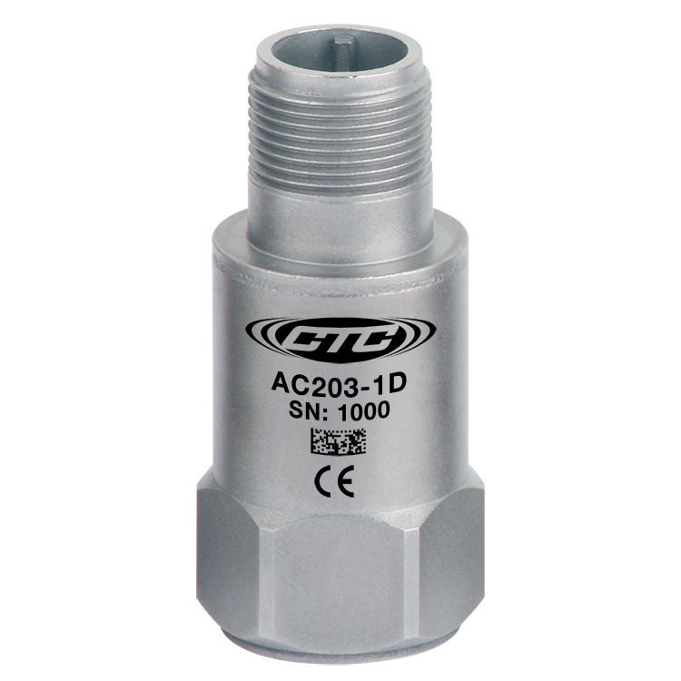 CTC AC203系列振動傳感器,低頻&高頻設計,頻響0.1-10000Hz,100 mV/g靈敏度,量程±80 g,316L不銹鋼外殼材質(zhì),2針MIL-C-5015軍標連接器或集成電纜