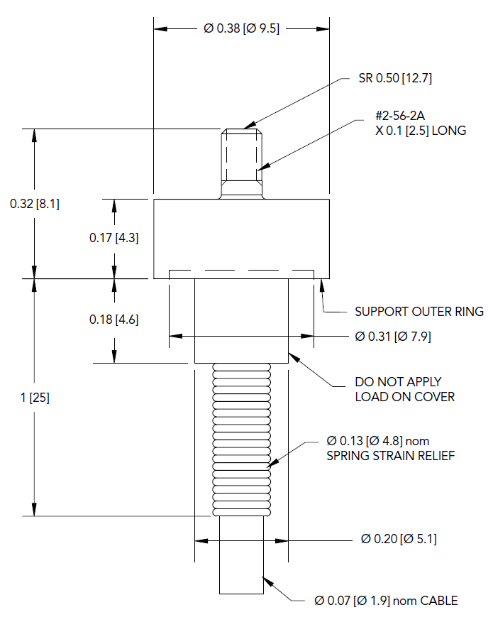 LLB215,44/111/222 N量程可選,底部出線,標(biāo)準(zhǔn)型號,材質(zhì) - 17-4 PH S.S.不銹鋼,#2-56英制外螺紋,#29 AWG 4芯編織屏蔽硅橡膠電纜,長度3米