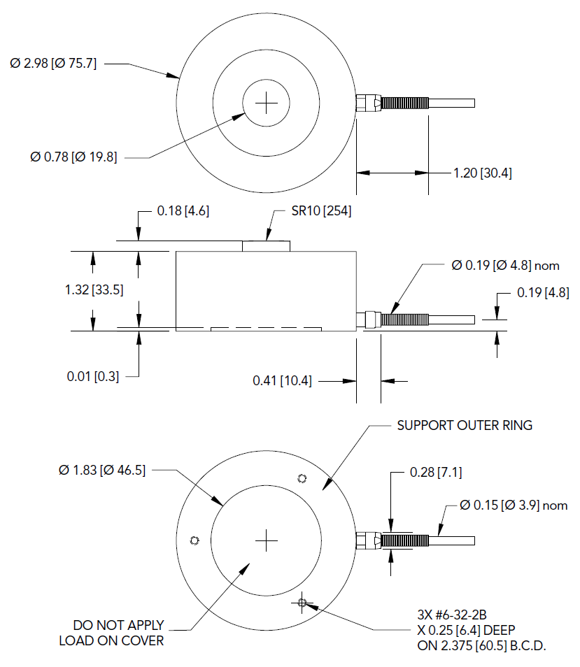 LLB550大量程按鈕式測(cè)力傳感器 FSH04033 222400 N LLB550,222400 N量程,按鈕式測(cè)力傳感器,RoHS認(rèn)證,底部#6-32安裝螺孔,材質(zhì) - 17-4 PH S.S.不銹鋼,#24 AWG 4芯編織屏蔽聚四氟乙烯電纜,長度3米